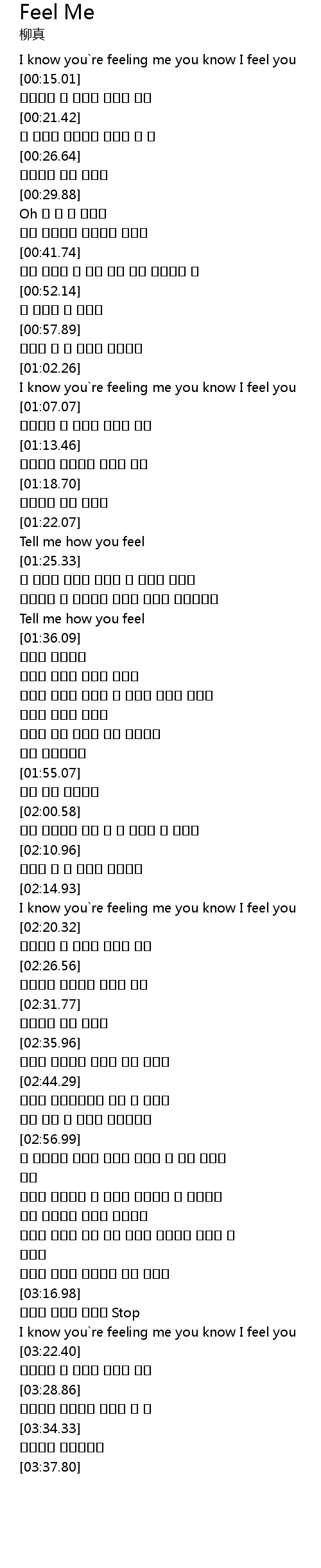 | [01:34.90] | Tell me how you feel |