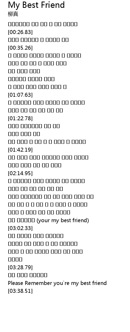 | [03:33.33] | Please Remember you re my best friend |
