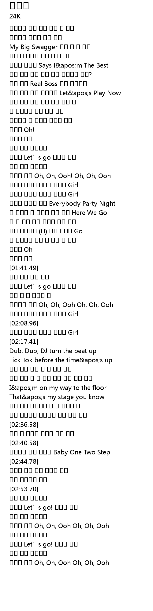 | [02:41.37] | 망설이지 말고 즐겨봐 Baby One Two Step |
