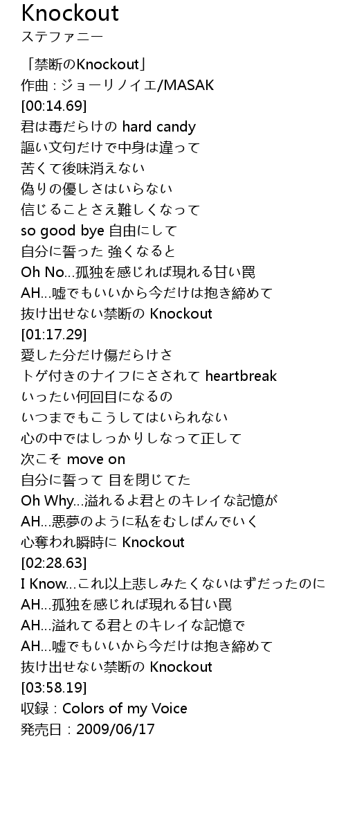 | [03:54.78] | 抜け出せない禁断の Knockout |