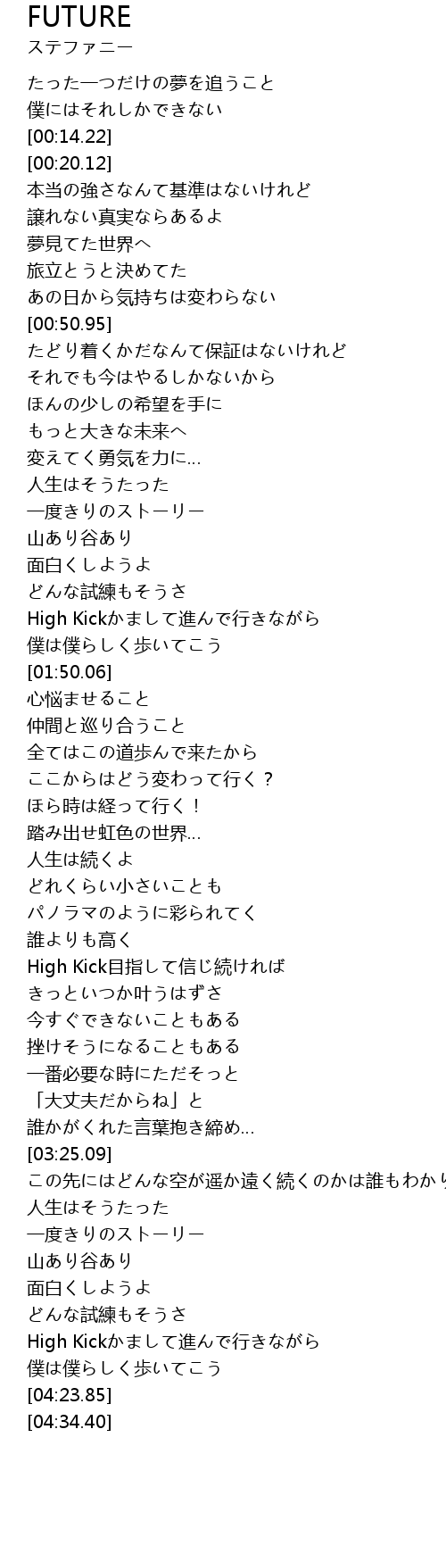 | [02:42.88] | High Kick目指して信じ続ければ |