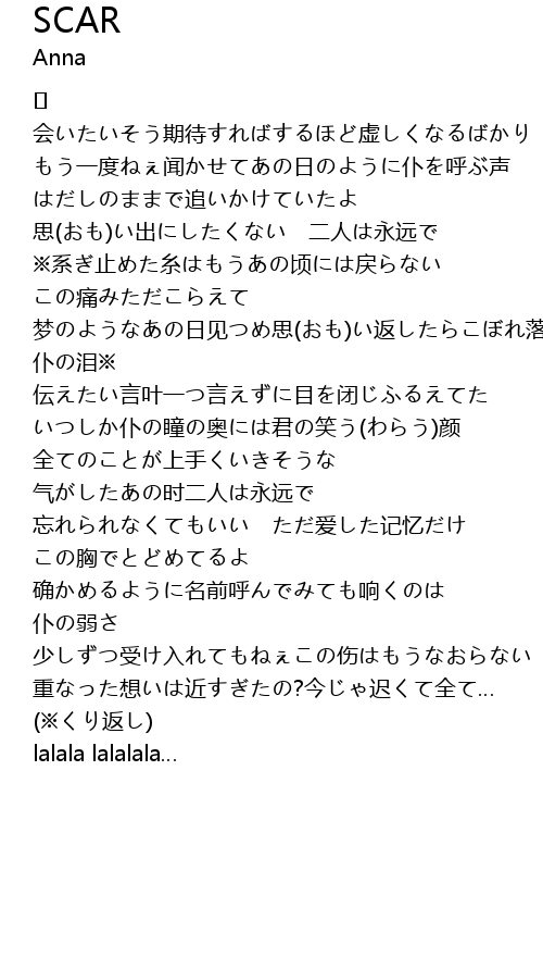 | 少しずつ受け入れてもねぇこの伤はもうなおらない | |