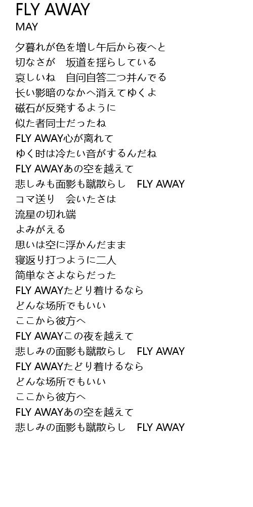 | [03:10.80] | FLY AWAY kōng yuè |