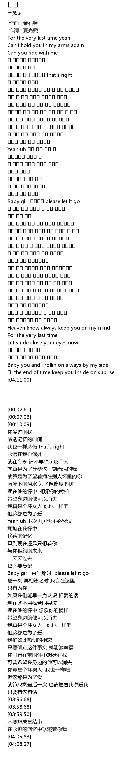 | [01:50.13] | Baby girl 直到那时 please let it go |