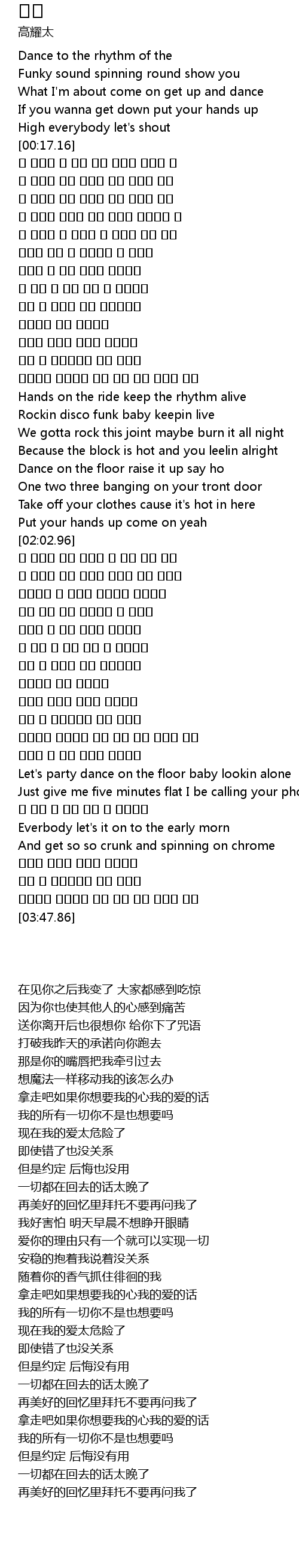 | [03:21.73] | Let' s party dance on the floor baby lookin alone |