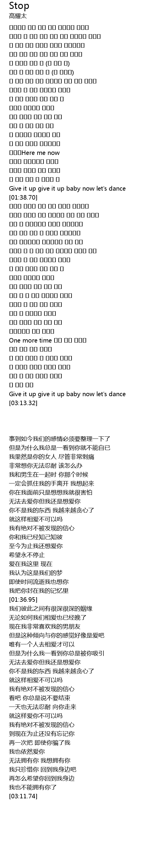 | [01:36.95] | Give it up give it up baby now let's dance |