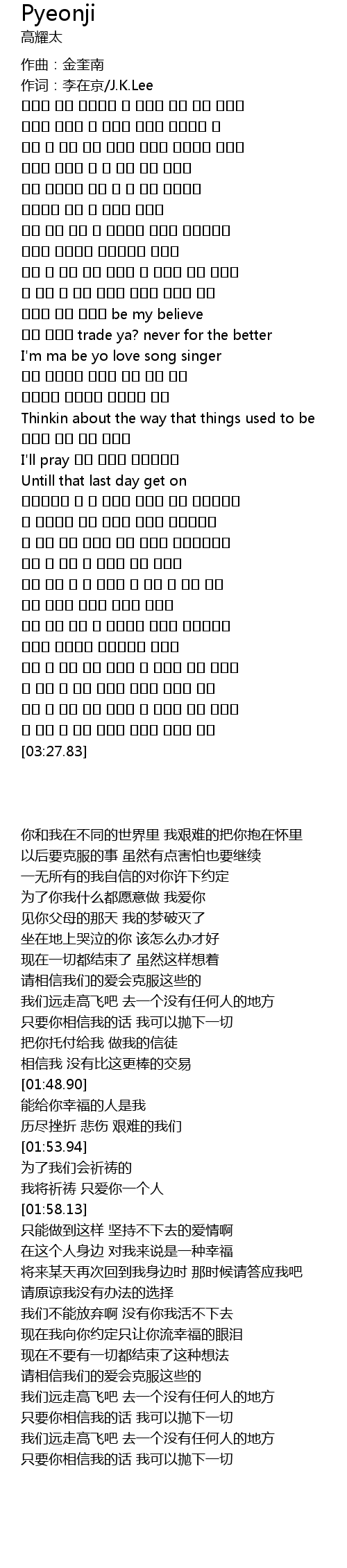 | [00:00.96] | zuo ci: li zai jing J. K. Lee |