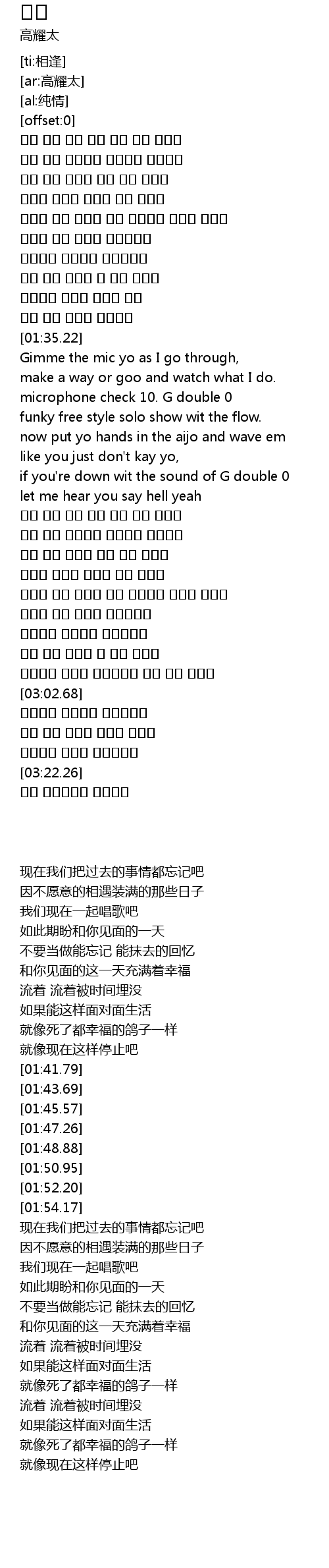 | [02:30.42] | 和你见面的这一天充满着幸福 |