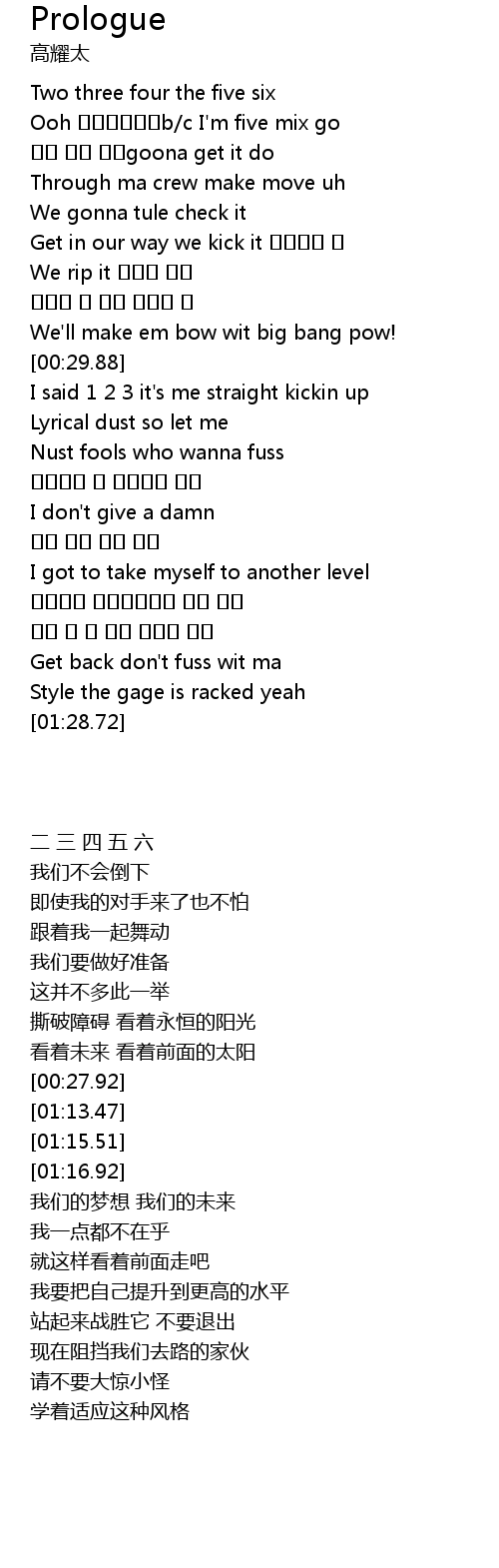 | [00:16.80] | Ooh b c I' m five mix go |