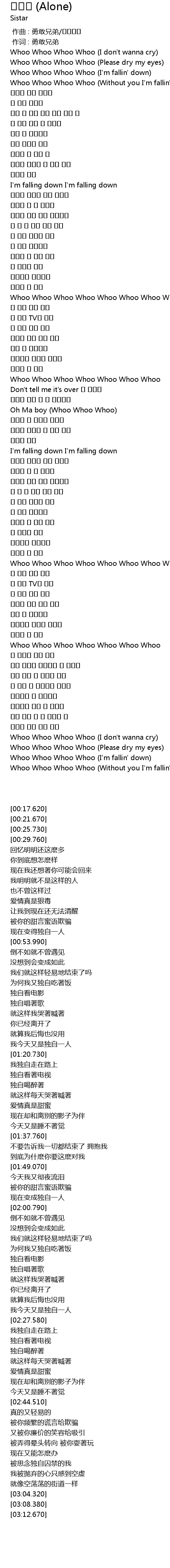 | [03:16.380] | Whoo Whoo Whoo Whoo (Without you I'm fallin' down) |