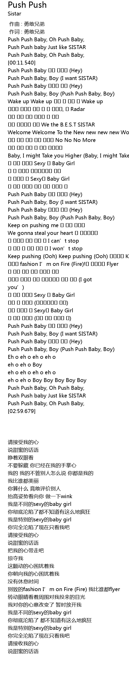 | [02:52.109] | Push Push baby Just like SISTAR |