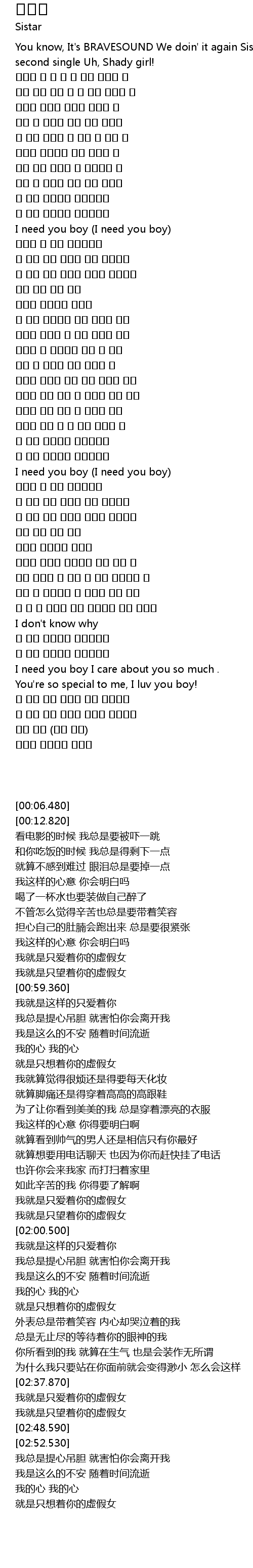 | [00:06.480] | You know, It' s BRAVESOUND We doin' it again Sistar, |