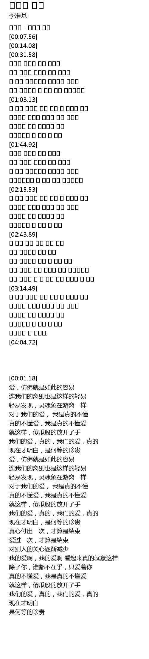 | [01:18.73] | 우리사랑 정말 우리사랑 정말 |