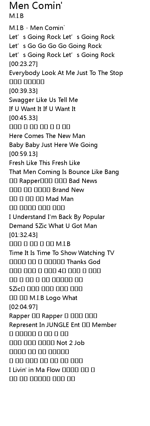 | [01:41.43] | 시간을 봐 지금 몇 시니 M.I.B |