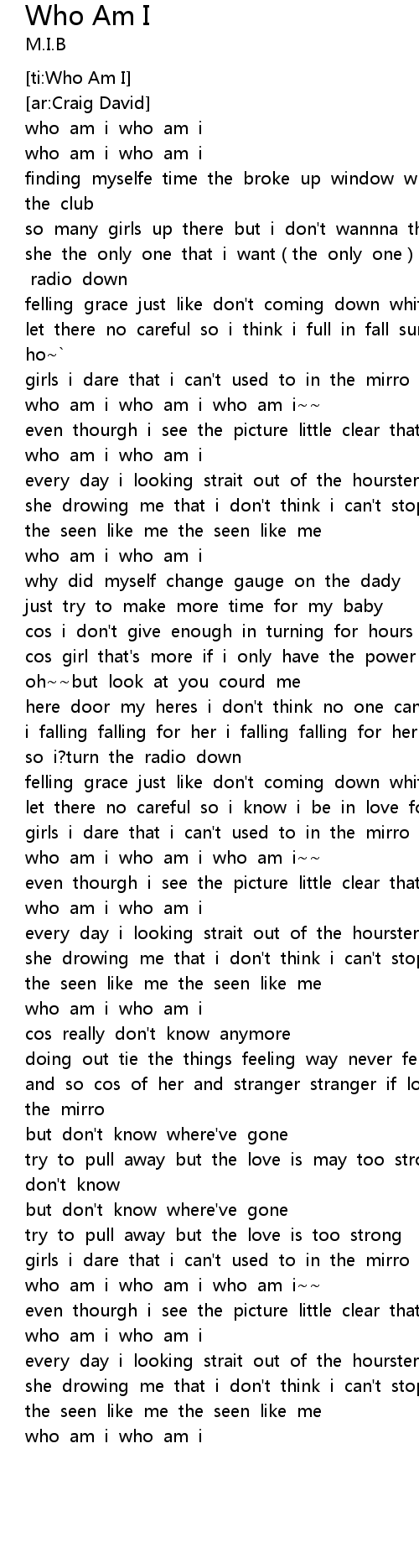 | [02:15.410] | who am i who am i |