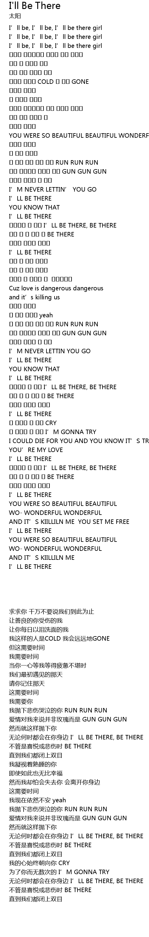 | [02:16.670] | 无论何时都会在你身边 I’LL BE THERE, BE THERE |