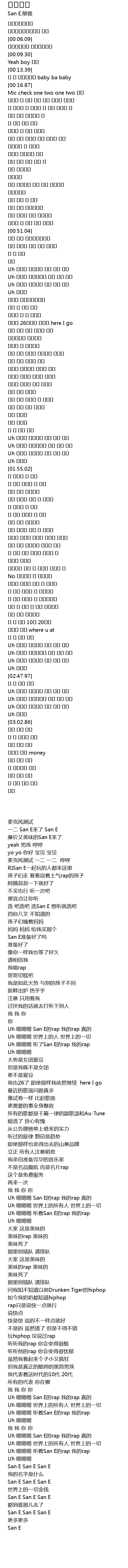 | [00:57.21] | Uh 嗯嗯嗯 San E的rap 我的rap 真的 |