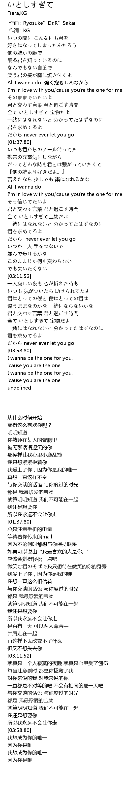 | [04:23.90] | 我想成为你的唯一 |