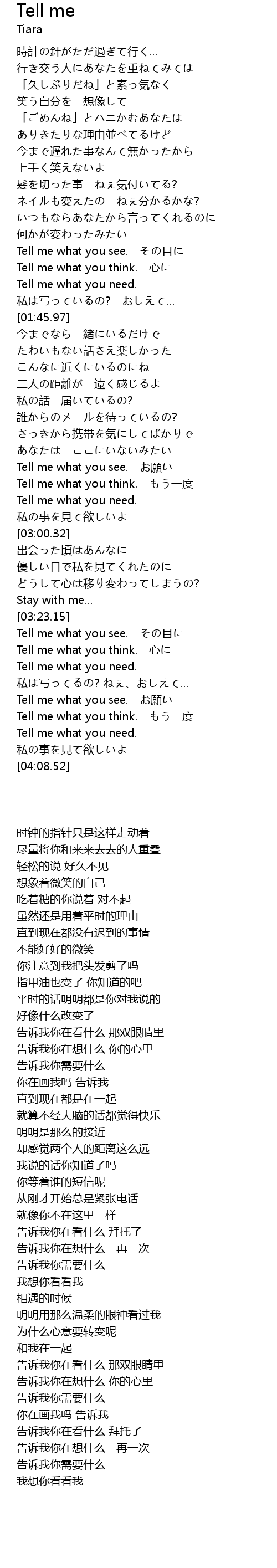 | [03:30.87] | 告诉我你在想什么 你的心里 |