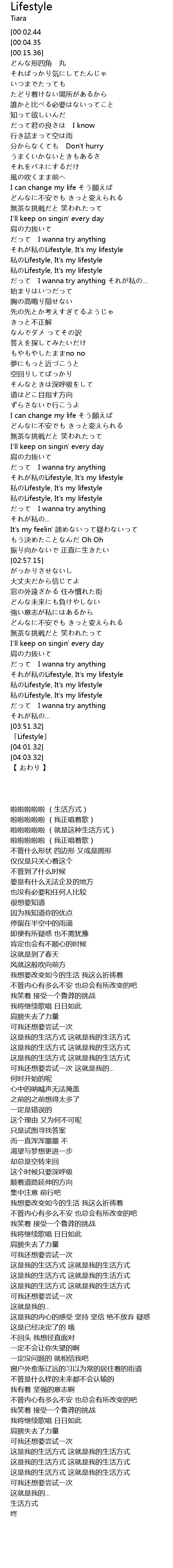 | [00:02.44] | 啦啦啦啦啦 (生活方式) |