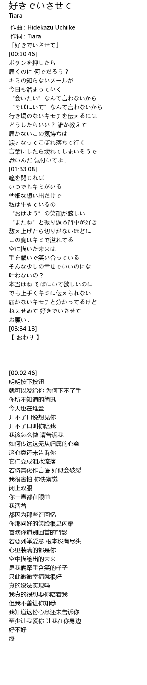 | [03:18.55] | ねぇせめて 好きでいさせて |