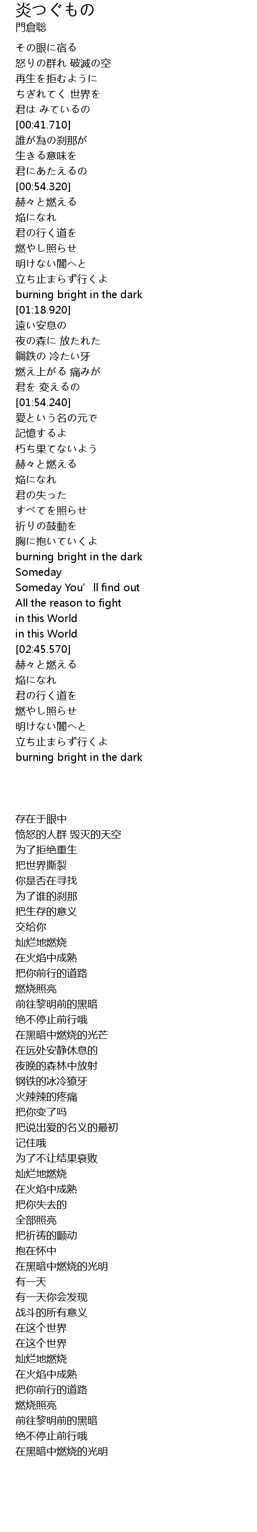 | [01:15.300] | 在黑暗中燃烧的光芒 |