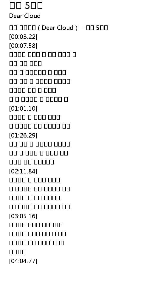 | [00:00.19] | 디어 클라우드(Dear Cloud) - 현실 5분전 |