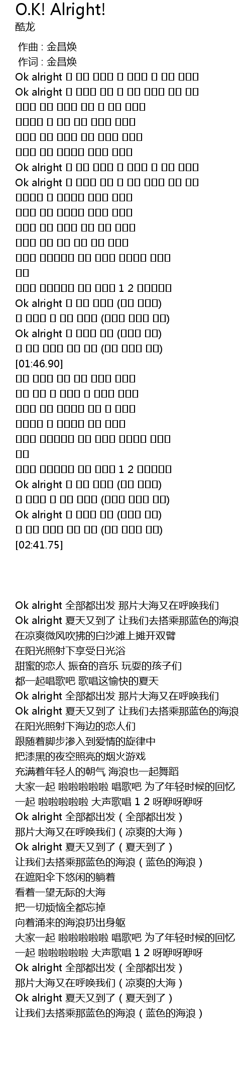 | [02:34.59] | Ok alright 또 여름이 왔다 (여름이 왔다) |