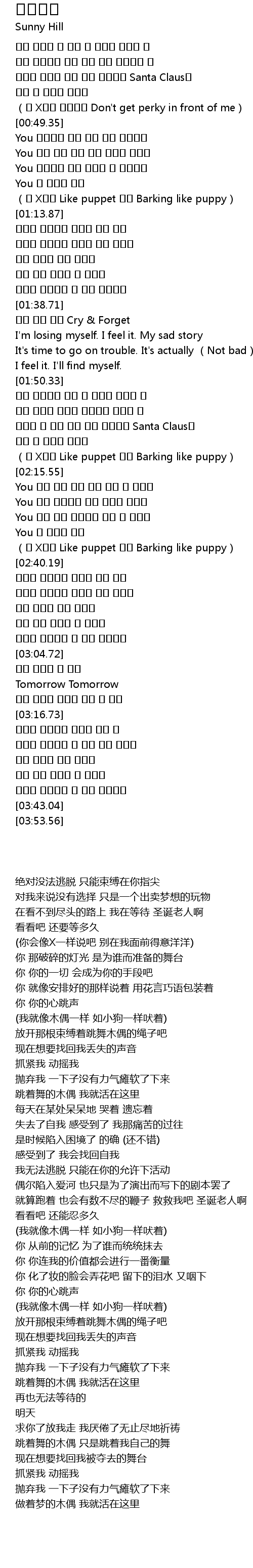 | [02:40.49] | 춤추는 꼭두각시 매였던 끈을 놓아 |