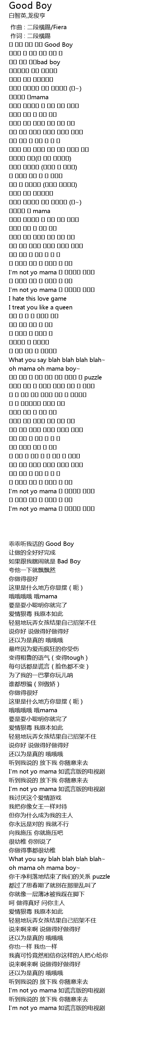 | [00:17.730] | 乖乖听我话的 Good Boy |