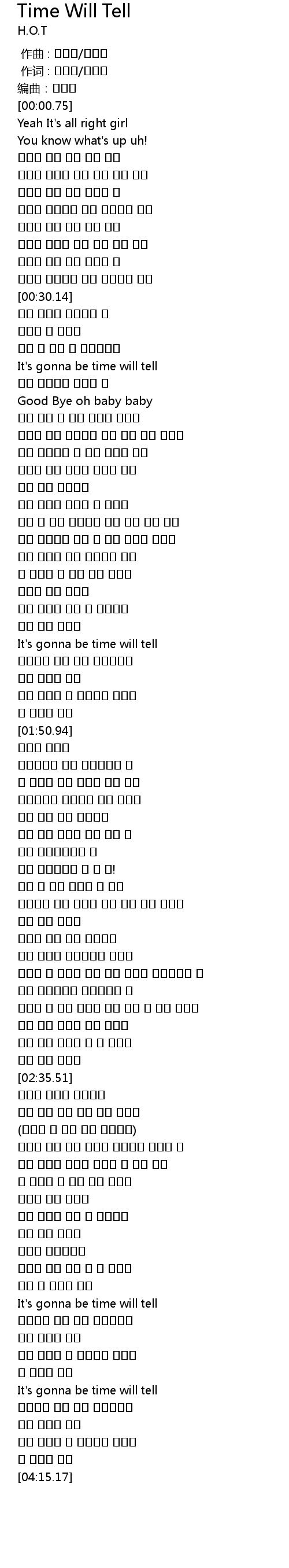 | [03:53.81] | It's gonna be time will tell |