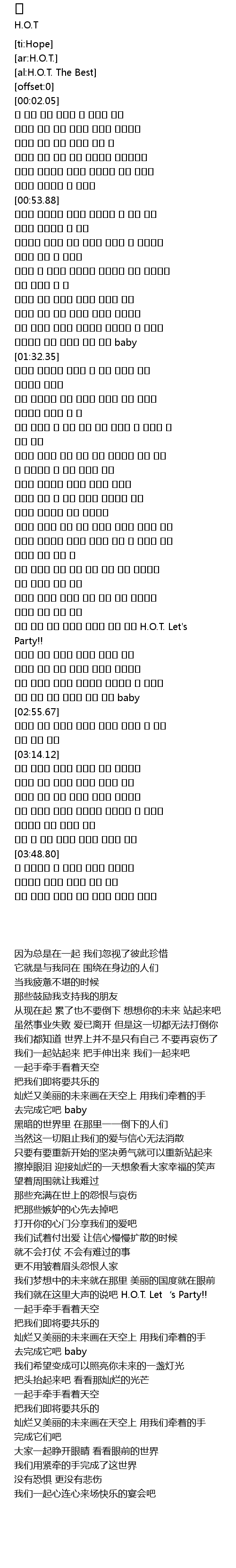 | [02:27.59] | H. O. T. Let' s Party!! |