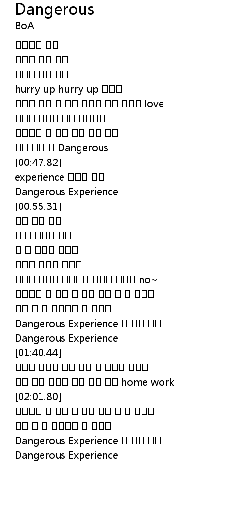 | [01:32.60] | Dangerous Experience 또 하날 배워 |