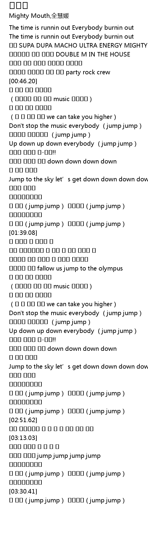 | [03:17.77] | 다같이 뛰어봐 jump jump jump jump |