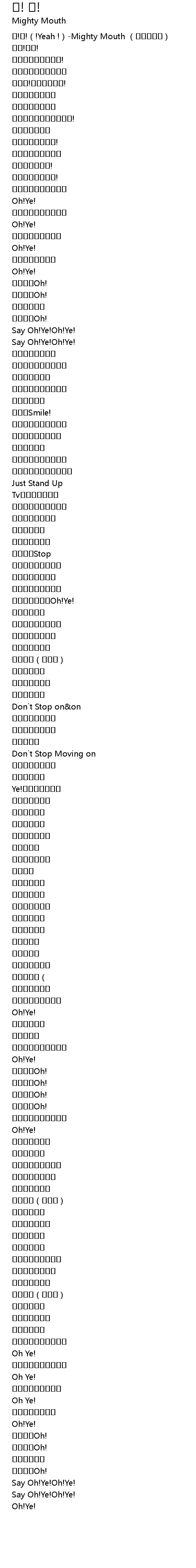 | [00:00.00] | 오!예!(!Yeah !)-Mighty Mouth (이티마우스) |