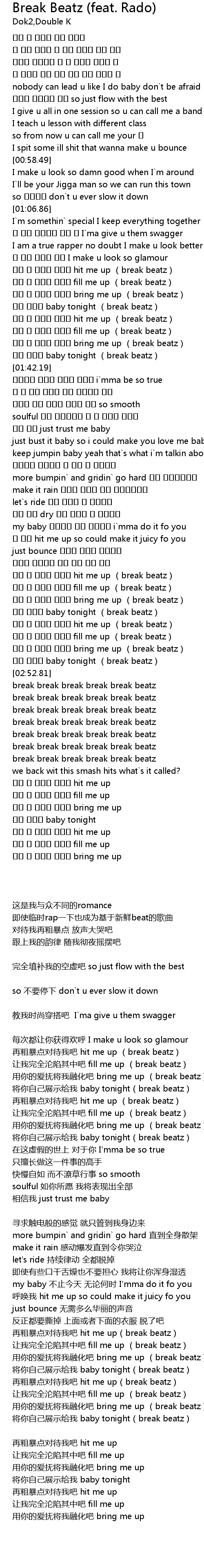| [01:18.94] | 나를 더 거칠게 다뤄줘 hit me up (break beatz) |