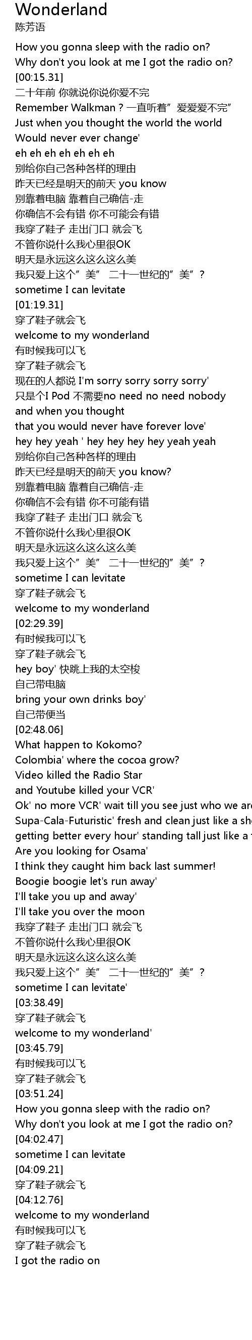 | [04:14.07] | welcome to my wonderland |