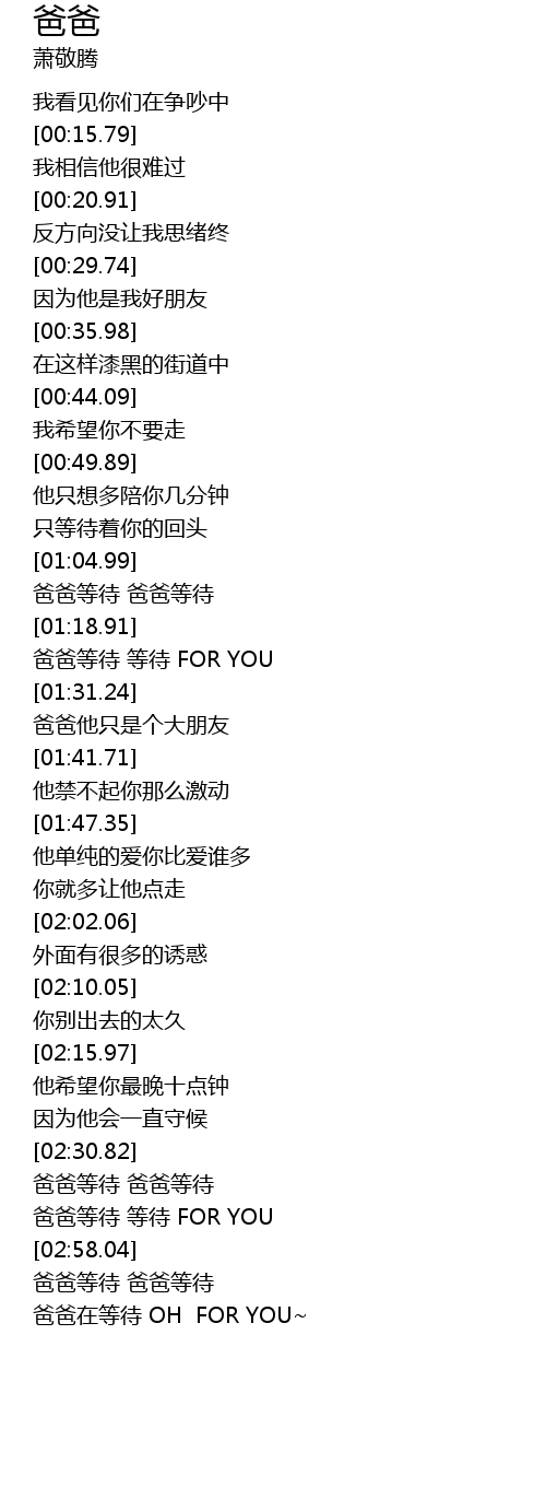 | [03:43.19] | 爸爸在等待 OH FOR YOU~ |
