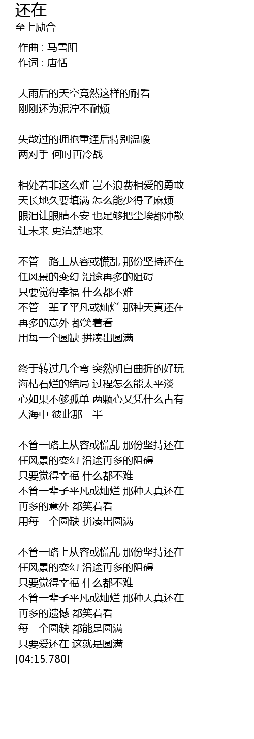 | [04:04.499] | 只要爱还在 这就是圆满 |