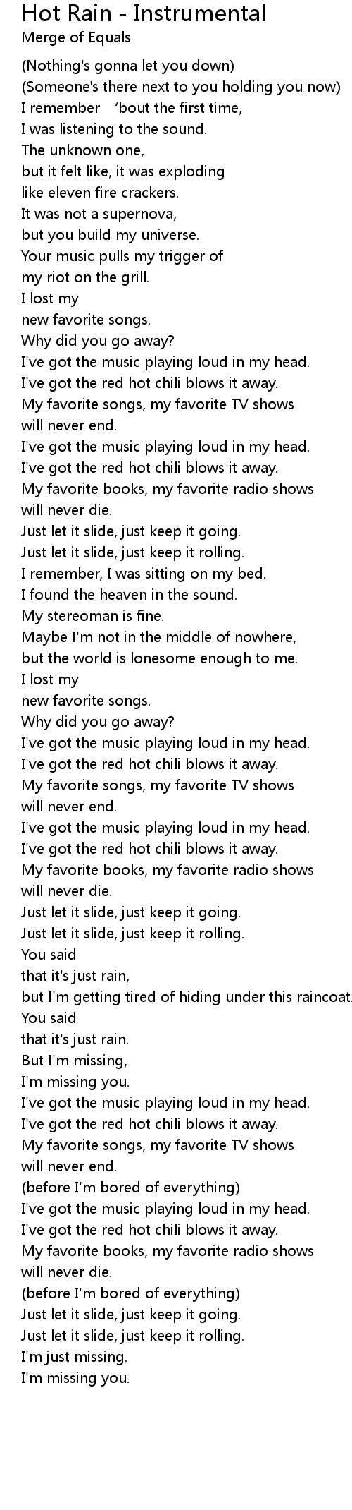 | 歌曲 | Hot Rain - Instrumental |