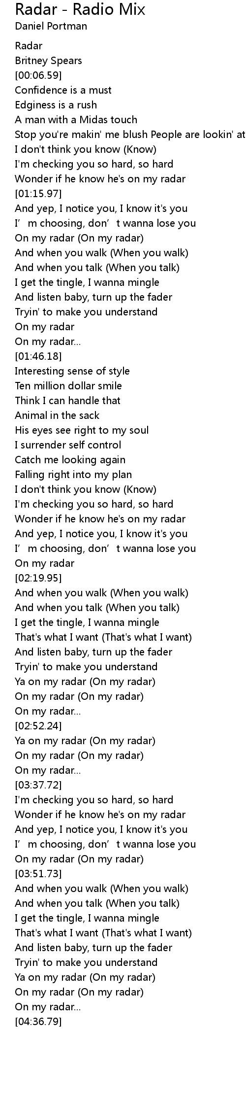 | [03:41.77] | Wonder if he know he' s on my radar |