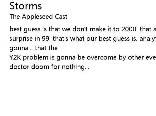 | Y2K problem is gonna be overcome by other events. well, they don't call you doctor doom for nothing... |