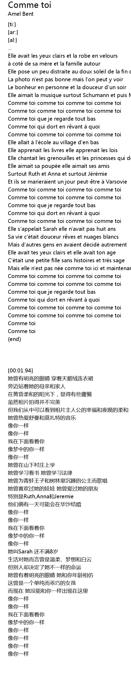 | [03:01.02] | Comme toi comme toi comme toi comme toi |