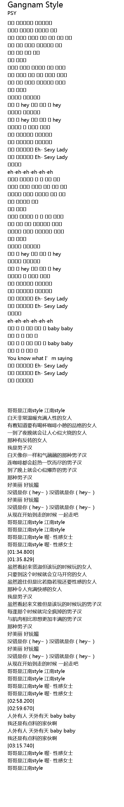 | [03:23.850] | 오빤 강남스타일 Eh- Sexy Lady |