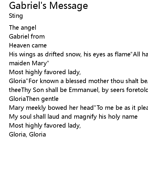 | Gloria"For known a blessed mother thou shalt beAll generations laud and honor theeThy Son shall be Emmanuel, by seers foretoldMost highly favored lady," | |