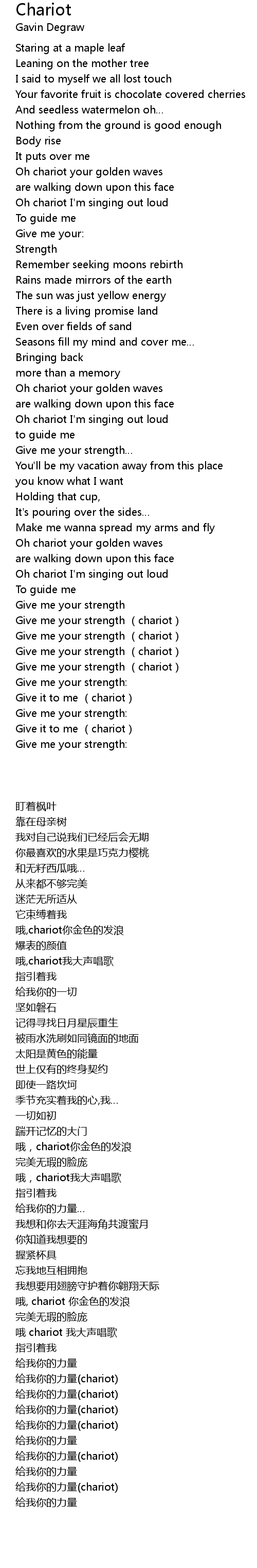 | [03:18.500] | Oh chariot I'm singing out loud |