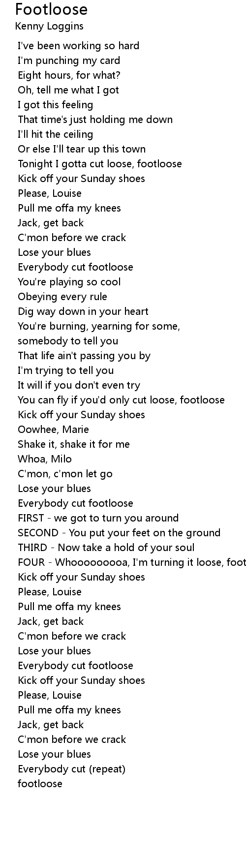 FOUR - Whooooooooa, I'm turning it loose, footloose |