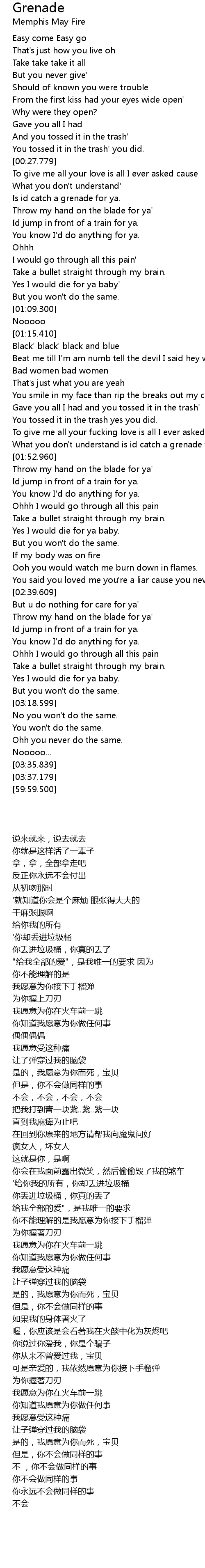 | [01:47.390] | 你不能理解的是我愿意为你接下手榴弹 |