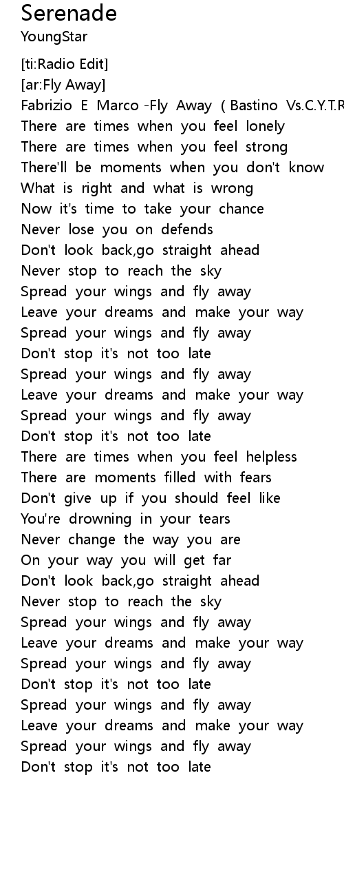 | [00:01.775] | Fabrizio E Marco -Fly Away (Bastino Vs.C.Y.T.Radio Edit) |