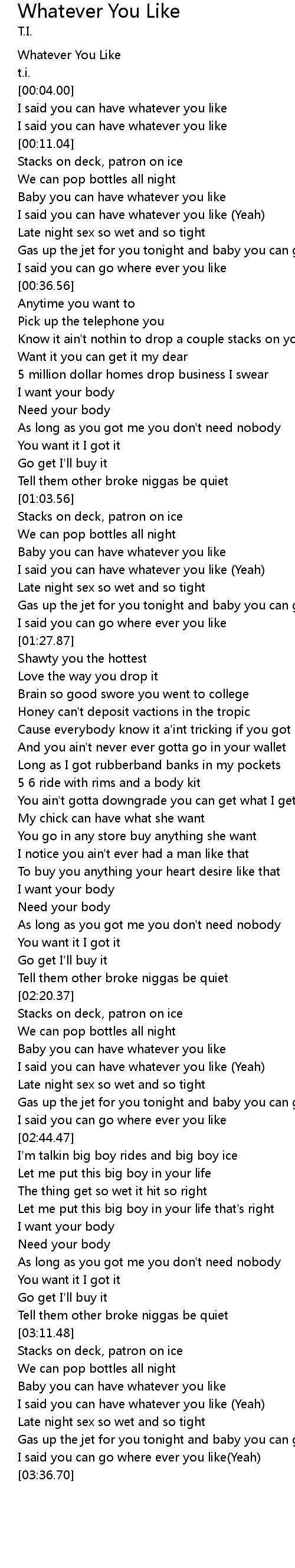 [03:19.68] I said you can have whatever you like (Yeah)